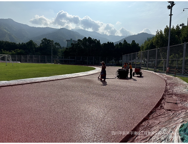 工程进度:我公司承建的二滩电厂硅pu篮球场、网球场面层施工中