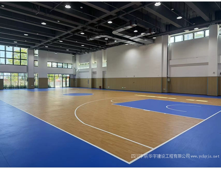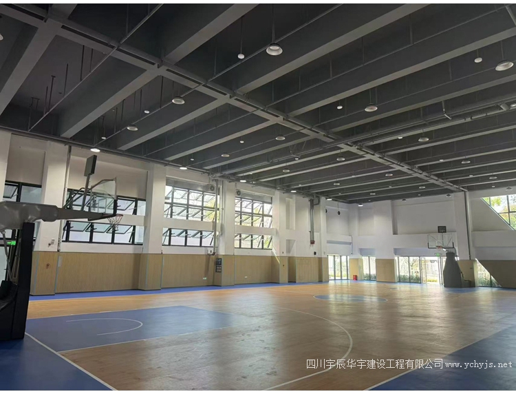 工程进度:四川天府新区湖畔路小学PVC篮球场完工
