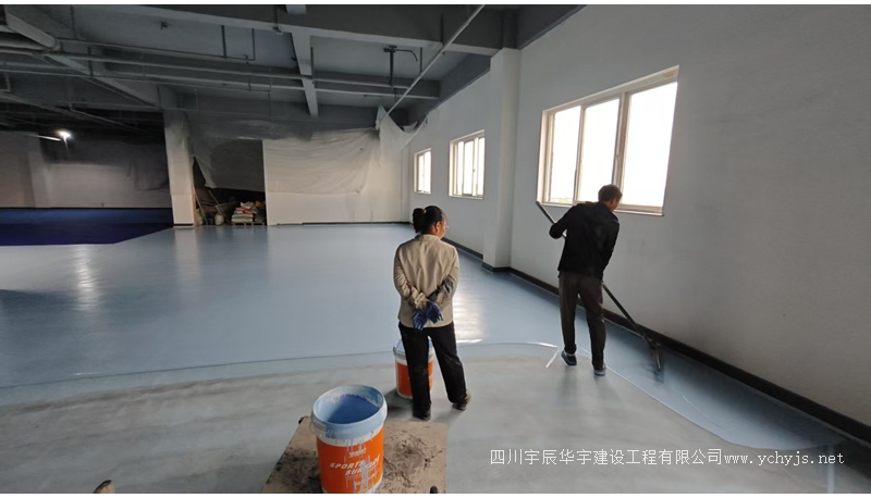 2025年10月23日,德贝网球场项目五楼硅PU施工中