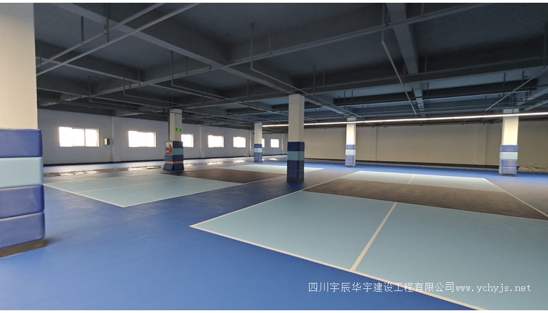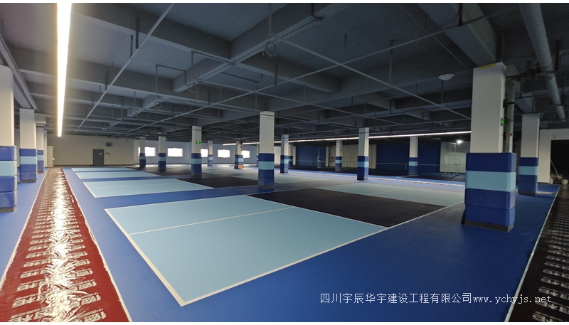 2025年10月23日,德贝网球场项目五楼硅PU施工中